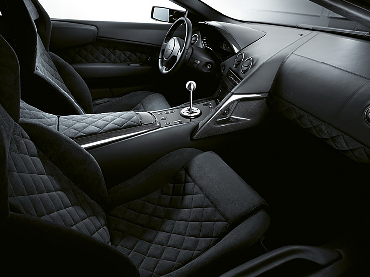 'ruitvormig' stiksel dat door Lamborghini 'Q-Citura' genoemd wordt, bijzonder mooi en dit versterkt onmiddellijk de supersportieve indruk van de wagen.